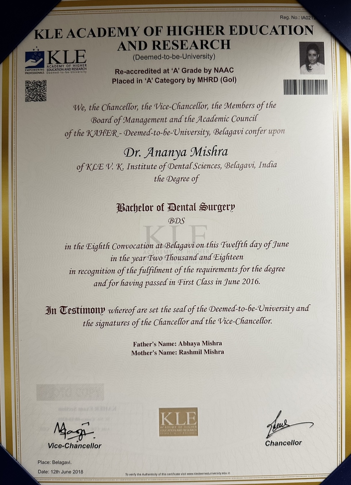 Dr. Ananya Mishra completed her BDS from KLE University, Belgaum, Karnataka.