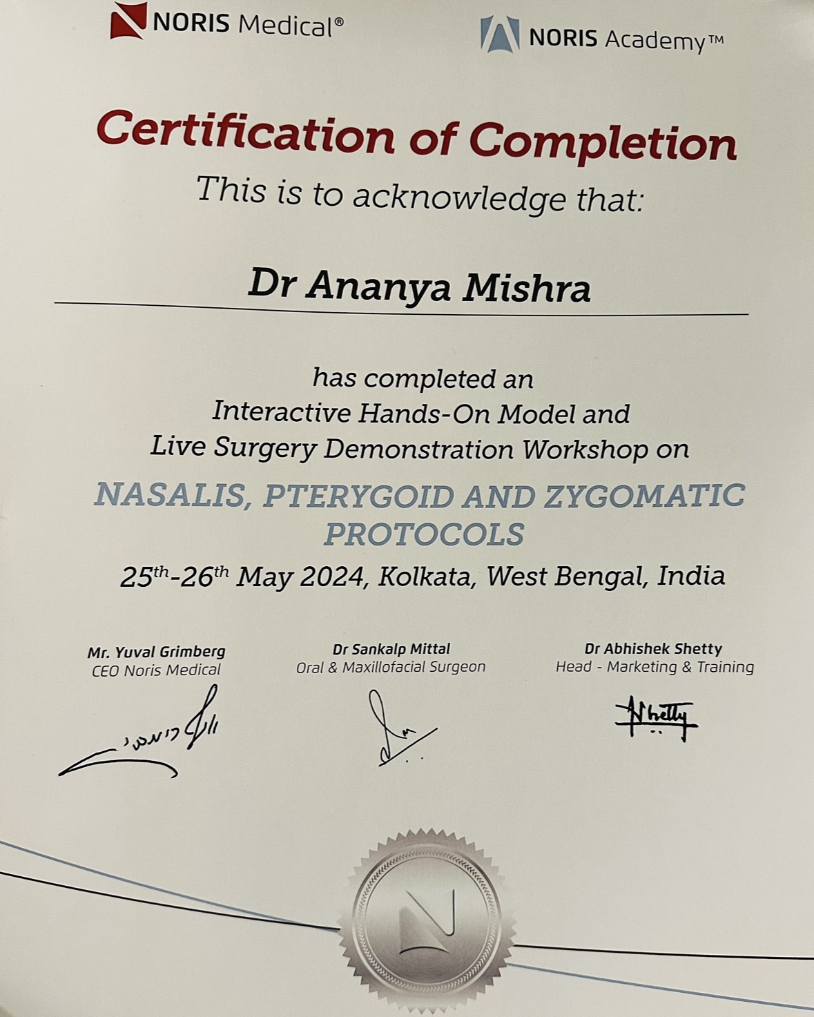 She is attached to various dental establishments in the city as a Consultant Oral & Maxillofacial Prosthodontist & Implantologist.