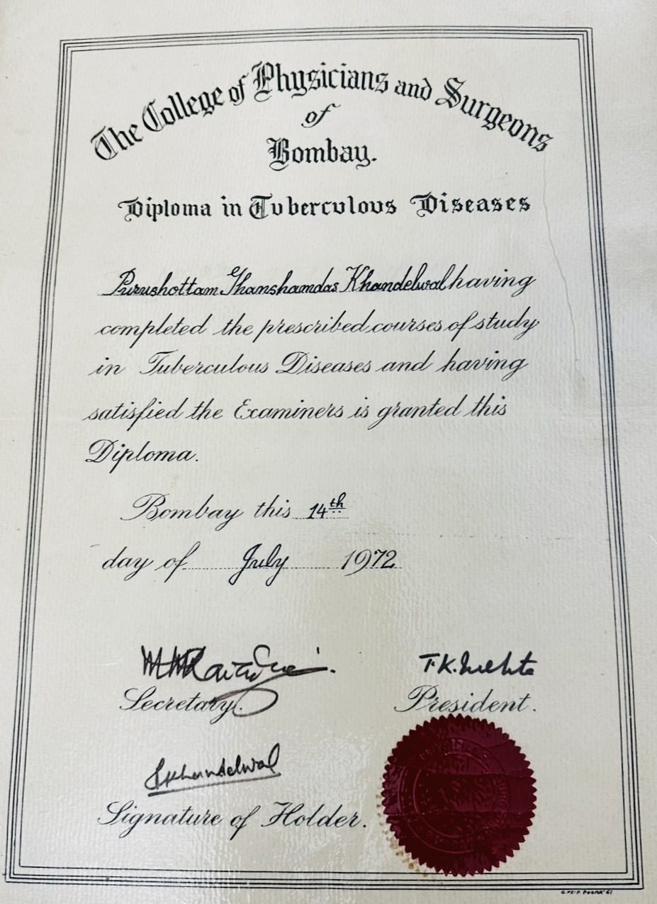 He was the chief investigator in multi centric study of efficiency of short term chemotherapy regimens in pulmonary tuberculosis in children from 1983 to 1988.